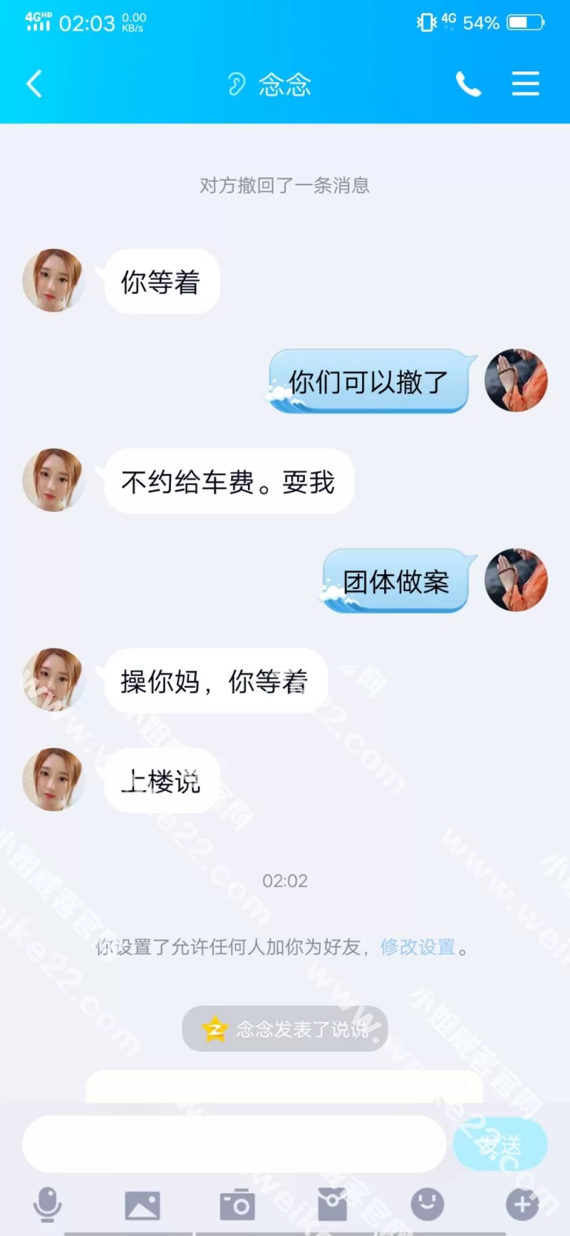 2019年6月25日夜,恐怖的仙人跳!陌陌上约的,六个男的提刀,给一个女的拍视频,兄弟你今天不玩就弄死你,如此嚣张,把我吓的房卡都拔了,门外的牌就不亮。所以躲过一劫!真的,五六把砍刀,挺吓人,拍视频恐吓你,人先拍视频让你看,然后给你二维码,付款。如此老套的玩法,尽然在西站如此盛行!我差一点拨通110。所以最近希望兰州的狼友,不要在陌陌上约,这是在玩命!希望管理员将此贴审核过,让更多的人看到,兰州还有拿刀拍视频恐吓的仙人跳!图片中有撤回消息为砍刀恐吓视频!!!!而且小姐的手是捏着的,视频是别人拍的!所以各位狼友,扩散!!!!