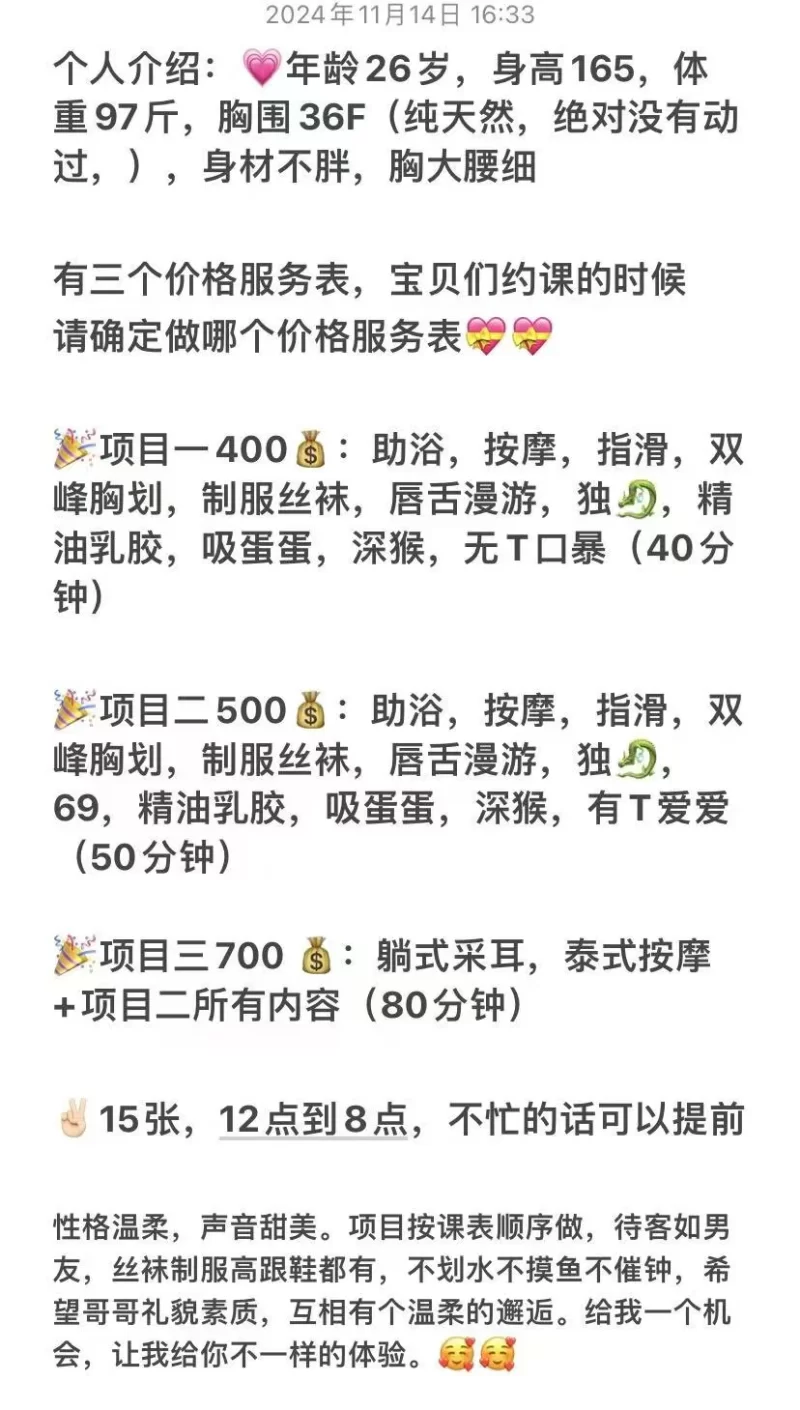 服务项目: 助浴,指划,胸推,漫游,毒龙,口,爱爱