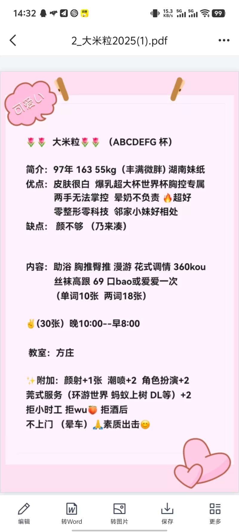 这是个头头管的一群资源,QQ是头头的,绕不开他。手底下有好几个人,不定期更新,有需要直接联系就行,当然非诚勿扰。我这次去的是一个外形不错的小妹妹,不过不是服务系的,就是简单的快餐,其他啥也没有,懂得都懂。但挺紧的,比较舒服,泄火舒服。不要冒然选择高档位,有些人懒得服务,不管你选啥给你都是4p的服务。